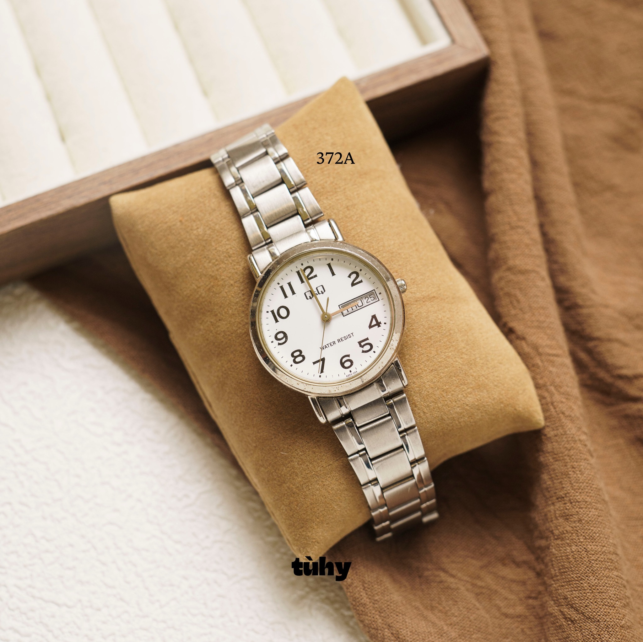 Một chiếc đồng hồ Q&Q (Nhật Bản) thiết kế đơn giản, dễ đeo.